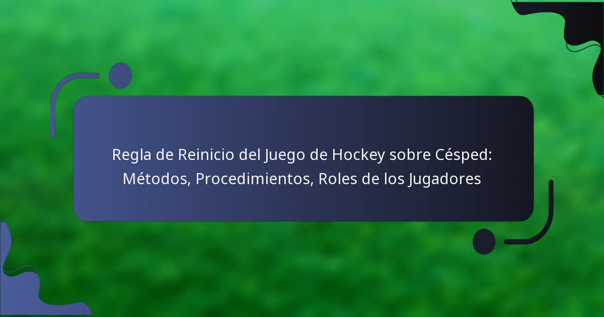 Los partidos de hockey sobre césped pueden reiniciarse a través de varios métodos, como tiros libres, córners cortos, strokes de penalti y auto-pases. Comprender las circunstancias y procedimientos específicos para cada método es esencial para que los jugadores y oficiales mantengan el juego limpio y el flujo del partido después de las interrupciones. El papel de cada jugador durante un reinicio es crucial, ya que los delanteros, defensores y porteros tienen responsabilidades distintas que impactan la estrategia y efectividad del equipo.
