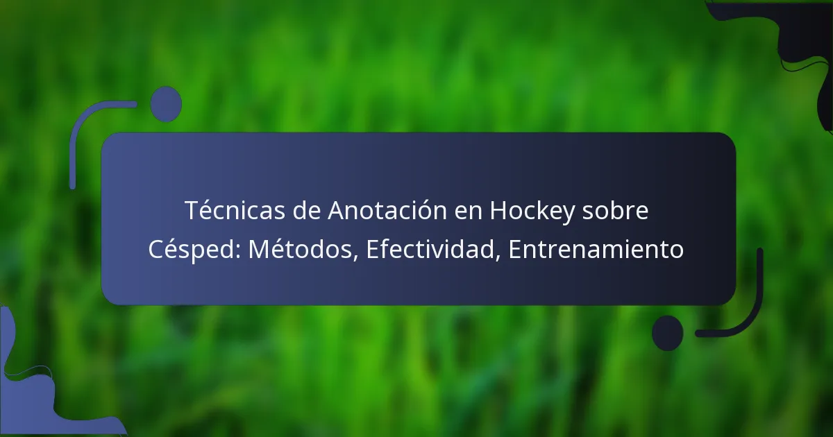 Las técnicas de anotación en hockey sobre césped son esenciales para los jugadores que buscan mejorar su capacidad para disparar el balón hacia la portería de manera efectiva. Al dominar varios métodos, los jugadores pueden mejorar significativamente su potencial de anotación y el rendimiento general del equipo. Comprender la efectividad de estas técnicas, influenciada por el nivel de habilidad y la dinámica del juego, es crucial para optimizar las oportunidades de anotación. Métodos de entrenamiento enfocados que desarrollan habilidades individuales y estrategias de equipo contribuyen aún más al éxito en la anotación durante los partidos.