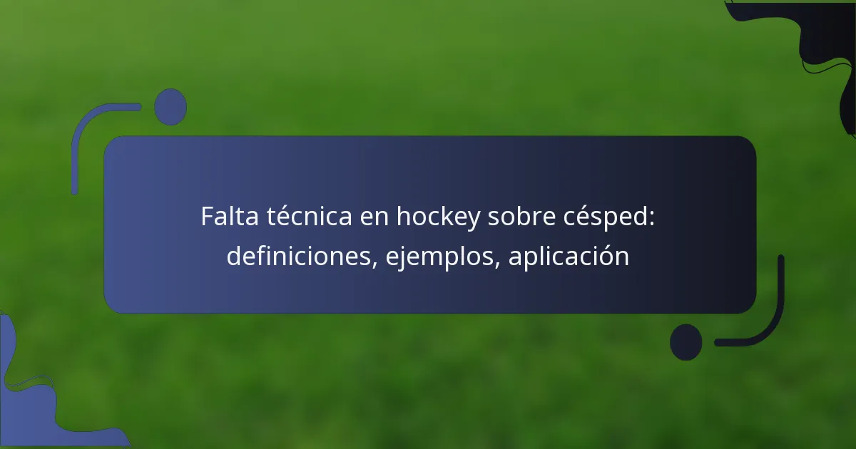 En el hockey sobre césped, una falta técnica se define como una violación de las reglas que no involucra contacto físico o comportamiento antideportivo, a menudo relacionada con infracciones procedimentales. Tales faltas pueden interrumpir el flujo del juego y generalmente resultan en un golpe libre para el equipo contrario. La aplicación de estas faltas sigue un proceso estructurado destinado a mantener el espíritu del juego mientras se abordan infracciones que pueden socavar el juego limpio.